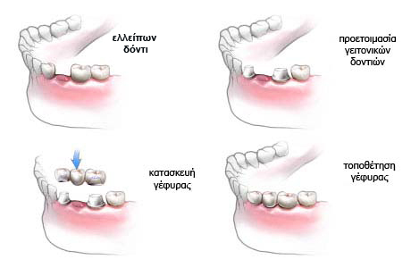 Είναι μια ακίνητη προσθετική εργασία που αντικαθιστά ένα ή περισσότερα δόντια που λείπουν και στηρίζεται σε δύο τουλάχιστον γειτονικά φυσικά δόντια-στηρίγματα. Οι γέφυρες είναι σταθερά κολλημένες στα φυσικά δόντια, σε αντίθεση με τις κινητές οδοντοστοιχίες οι οποίες αφαιρούνται και επανατοποθετούνται στο στόμα από τον ίδιο τον ασθενή.